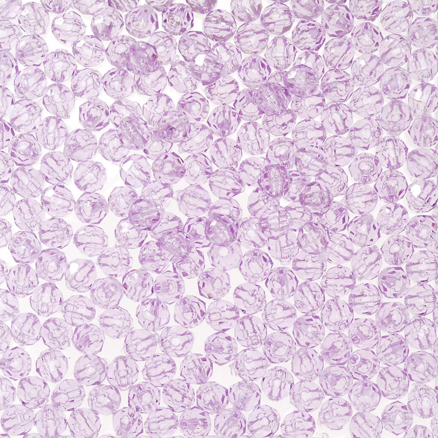 10 mm - LT AMETHYST - 432 pc These 10mm faceted beads are a transparent color (light can be seen through the bead). 10mm beads are a light weight alternative to glass for jewelry making, beading projects, kid's crafts, making fishing lures and more. Combine these faceted plastic beads with bead caps, specialty findings, gold or silver beads and wire to make unique and beautiful bead creations. 10mm beads, 432 pcs per package.