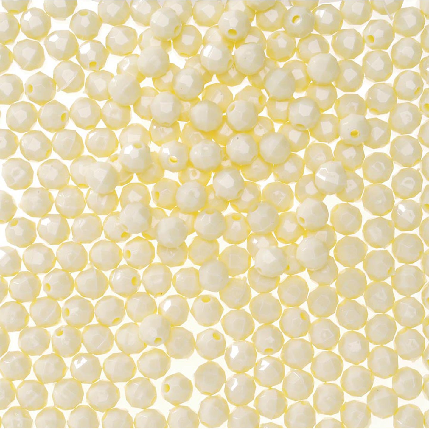 10 mm - IVORY - 144 pc These 10mm faceted beads are an opaque color (light cannot pass through the bead). 10mm beads are a light weight alternative to glass for jewelry making, beading projects, kid's crafts, making fishing lures and more. Combine these faceted plastic beads with bead caps, specialty findings, gold or silver beads and wire to make unique and beautiful bead creations. 10mm beads, 144 pcs per package.