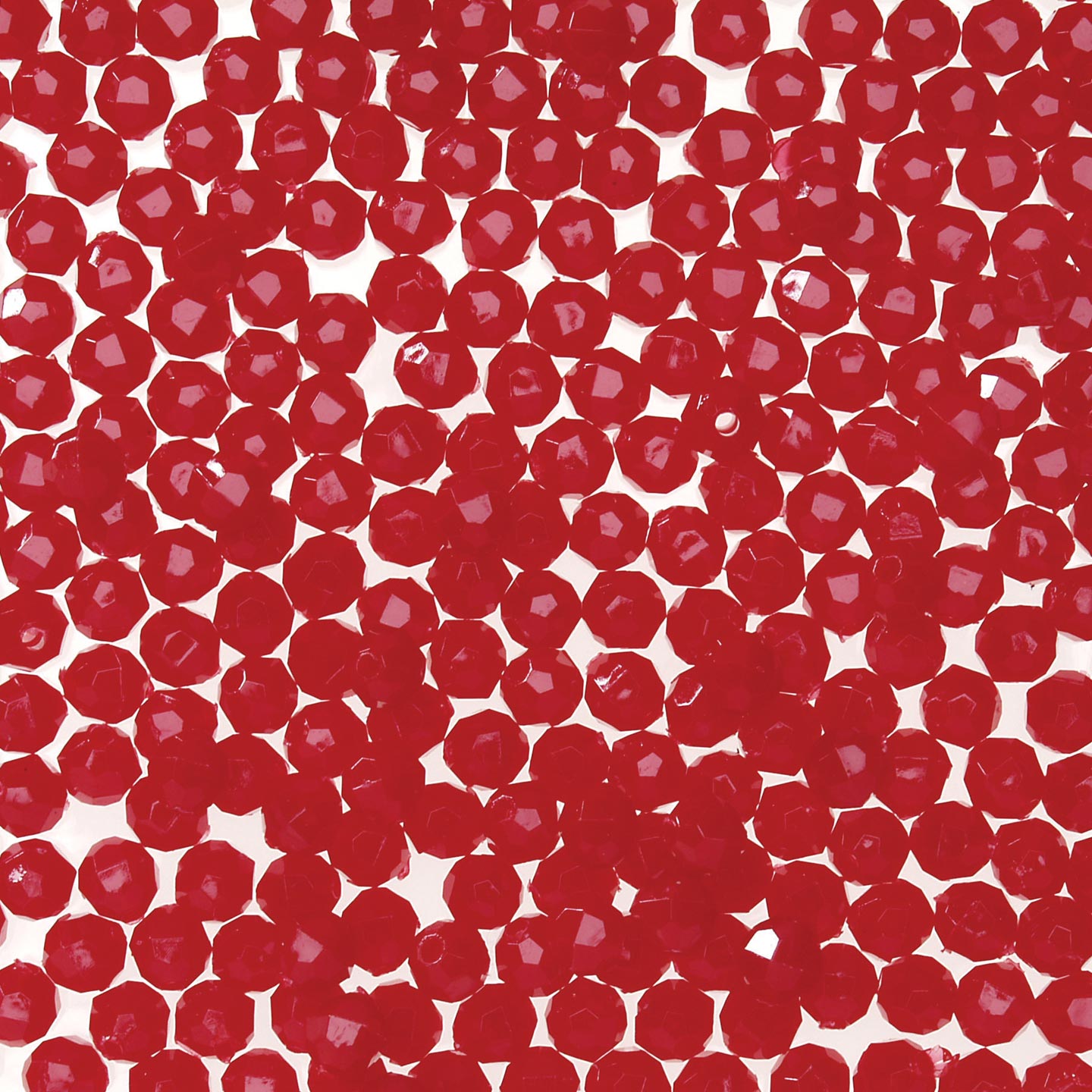 10 mm - XMAS RED - 432 pc These 10mm faceted beads are a transparent color (light can be seen through the bead). 10mm beads are a light weight alternative to glass for jewelry making, beading projects, kid's crafts, making fishing lures and more. Combine these faceted plastic beads with bead caps, specialty findings, gold or silver beads and wire to make unique and beautiful bead creations. 10mm beads, 432 pcs per package.