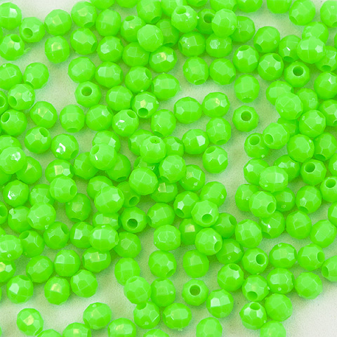 10 mm - LIME - 144 pc These 10mm faceted beads are an opaque color (light cannot pass through the bead). 10mm beads are a light weight alternative to glass for jewelry making, beading projects, kid's crafts, making fishing lures and more. Combine these faceted plastic beads with bead caps, specialty findings, gold or silver beads and wire to make unique and beautiful bead creations. 10mm beads, 144 pcs per package.