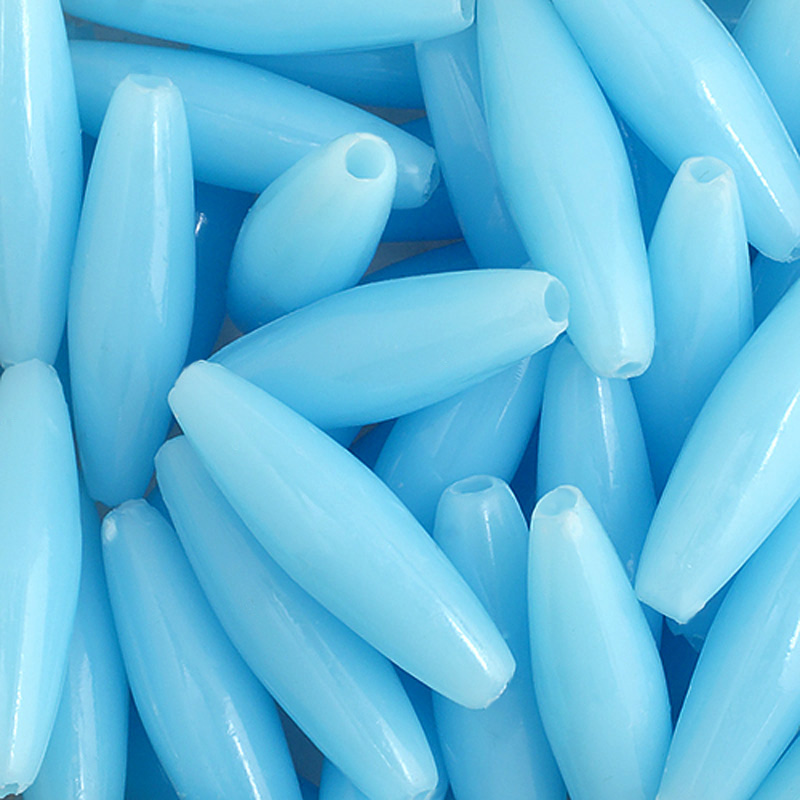 19mm x 6mm - LT BLUE OP - 50 pc Spaghetti beads 19mm long x 6mm wide.