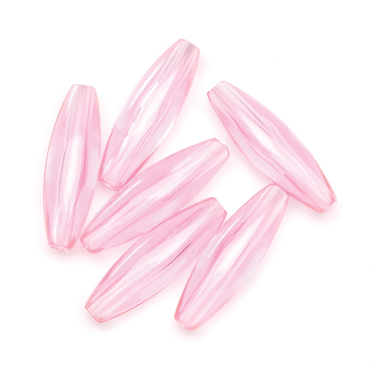 19mm x 6mm - PINK TR - 50 pc Spaghetti beads 19mm long x 6mm wide.