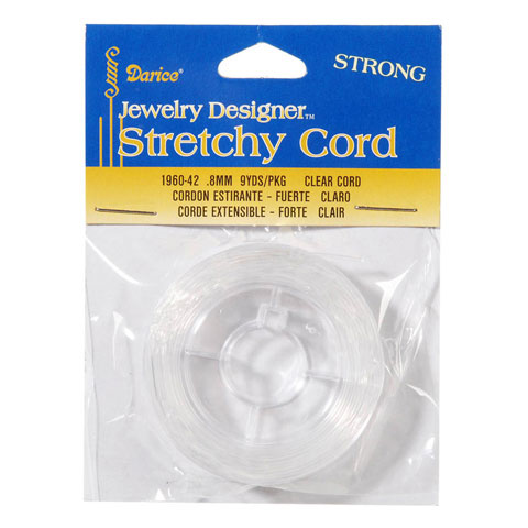9 yards - CLEAR - .8 mm thick The ultimate stretchy beading cord. Strong, yet easy to work with. Stretches like elastic, but HOLDS ITS SHAPE! (after pre-stretching) Perfect for beading and jewelry making.