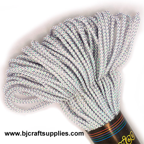 27 yds - WHITE / SILVER - Skein Beautifully colored metallic cords for plastic canvas projects, jewelry crafts and more! 2mm thick