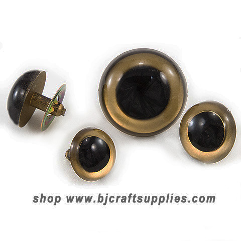 18 mm - DK GOLD - 50 pc (25 Pair) 18mm Gorgeous dk gold (almost brown) Teddy Bear Eyes are perfect for all stuff animals. Plastic safety eyes for stuffed animals go through the fabric and attach with a washer back on the inside of the animal. High quality plastic safety eyes are perfect for replacing missing eyes on your favorite teddy bear or for creating a new friend to love. Contains 50 eyes and backs.