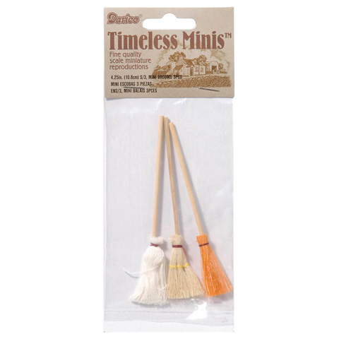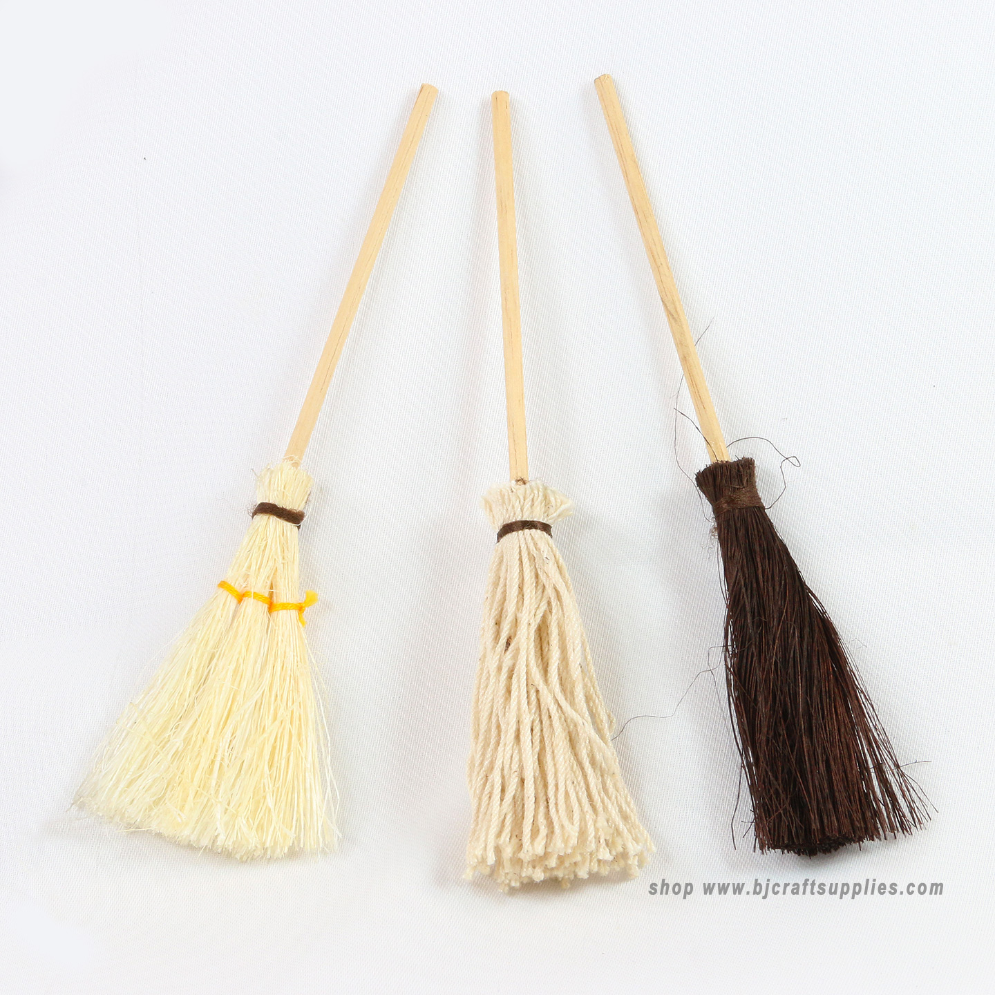 Craft brooms in round and flat styles. Miniature brooms are great for your craft project, holiday decorating and used as doll house accessories.